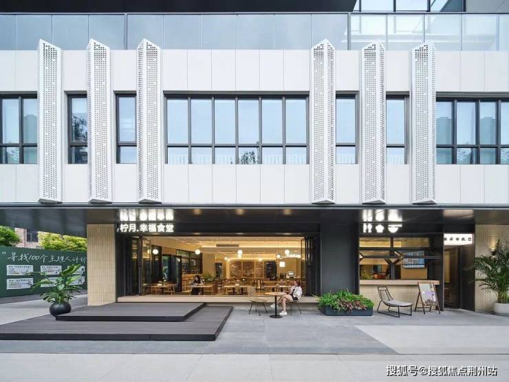沿街商业设施采用现代时尚的立面元素,以铝板框限定立面,局部跳色结合室外灰空间设计,打破单调。商业业态丰富多元,涵盖生活配套、咖啡烘焙、社区大堂等,构建具有城市影响力的文化生活新去处,为街道注入全新活力,提升区域整体城市价值。