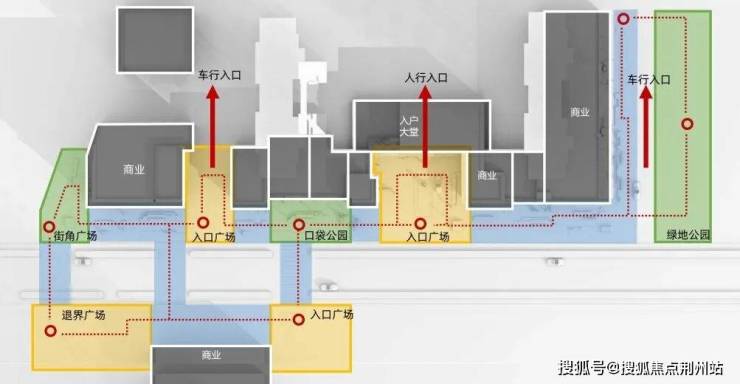燕语光年立足青山区核心区位,针对周边商业界面呆板、公共空间缺失、城市形象陈旧的痛点,通过商业布局与空间设计激活街道活力。商业配套沿街布置,采用体块打断、切分、退让的手法,植入入口广场、街角广场、口袋公园等公共空间,通过重新定义功能,形成开放共享的城市公共节点。