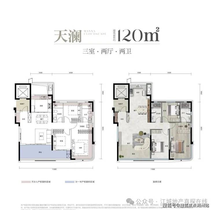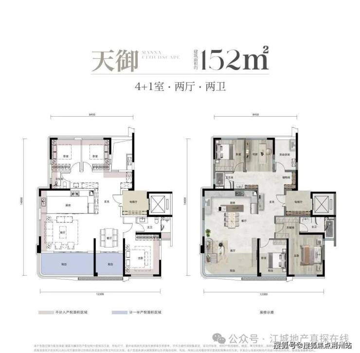 项目更精研高端居住需求,配备精装双入户大堂、全龄主题架空层、下沉式泛会所等进阶配置;建面约112-152㎡天幕华宅采用独梯入户设计,高得房率,适配家庭多元需求。