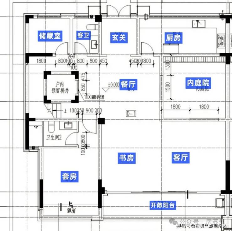 以东西边户为例,首层设置餐客厅、厨房、书房、套房、卫生间以及内庭院,空间非常开阔。