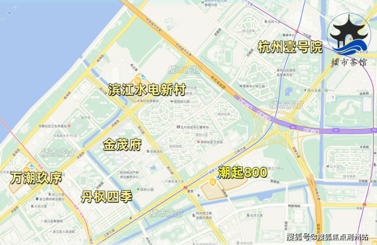 潮起800位于滨江区区政府板块,北靠江南大道,不远处就是立交桥,噪音很大,西侧就是加油站,不利因素较为明显,但瑕不掩瑜,周边还是很高大上的,南侧有河道景观,以及不错的总部大楼集群,东侧就是地标智慧之门。