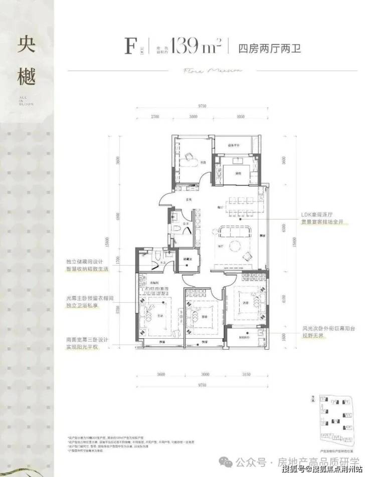 建筑面积约139平米四室两厅双卫户型,以其南向三卧室的宽阔布局、双飘窗与封闭阳台的独特设计脱颖而出。该户型占据小区景观资源核心位置,采用南北通透的整体设计,通风采光极佳。