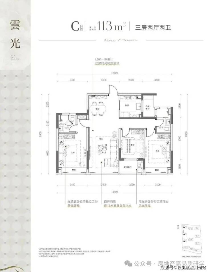 项目总建面约9万方,规划11幢12-16层纯高层,采用"南低北高"的错落布局,建筑限高50米,楼幢间距预计较为开阔,错落式布局,打造了两大主题园林空间。推出建面约99㎡与113㎡精致三居室,以及建面约108㎡、120㎡、128㎡、139㎡宽敞四居室,满足不同家庭需求。