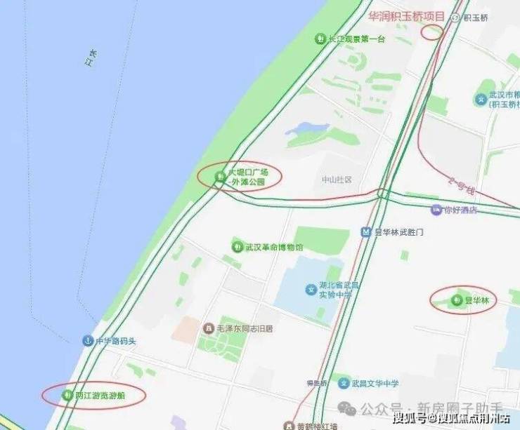休闲配套:华润望雲周边就是武昌江滩,步行距离约900米就是大堤口广场外滩公园。