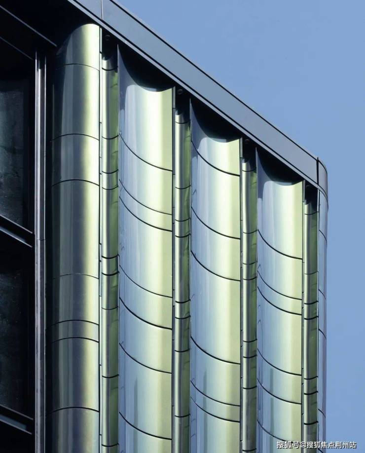 采用大量弧线工艺,包括转角玻璃阳台、弧形铝板、墙面线条和大门线条等,致敬了邬达克装饰艺术派的设计美学。
