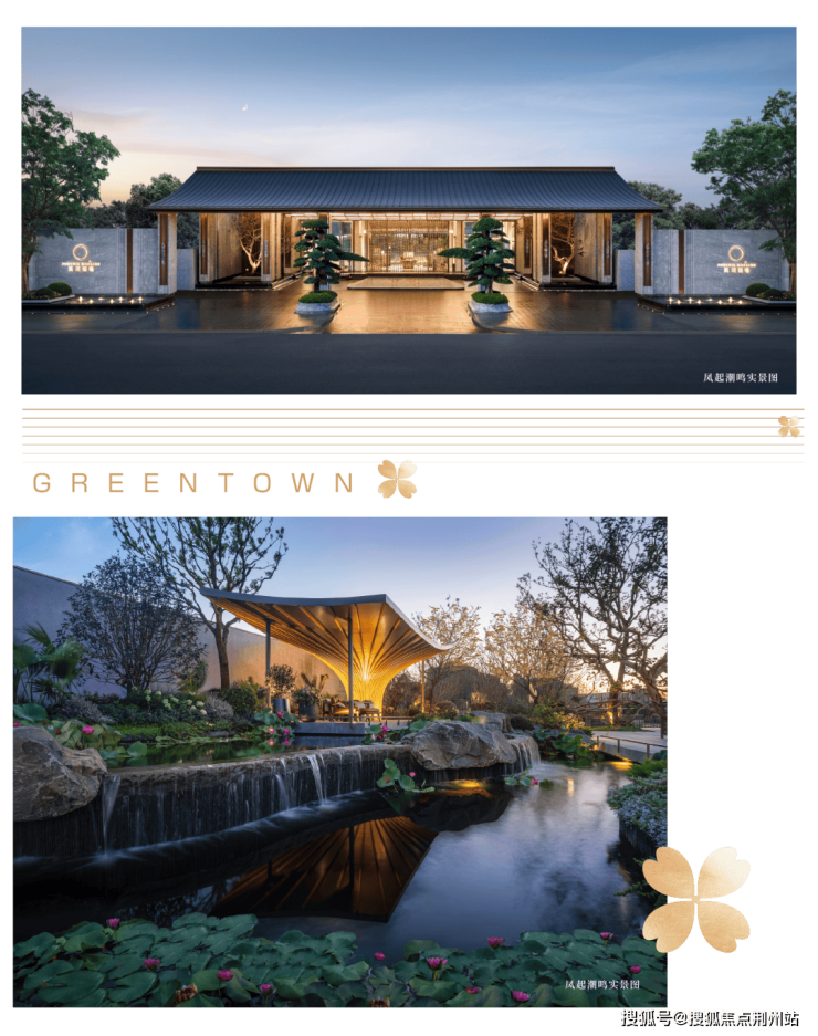 苏州凤起潮鸣,门庭主入口约6米宽冕旒垂帘,约6045颗景泰蓝珠串联振玉,将帝王冠冕垂珠的至高仪制,升华为迎接时代精英的“精神冠冕”。遵循地块本身三面环水岛居的特质,“引水入园”的智慧让建筑从湖畔自然生长而出,红线外创造出一片独立于都会的绿洲、并打造约450米长的鸣凤堤景观水系,使得园内外皆是波光与树影的写意画。