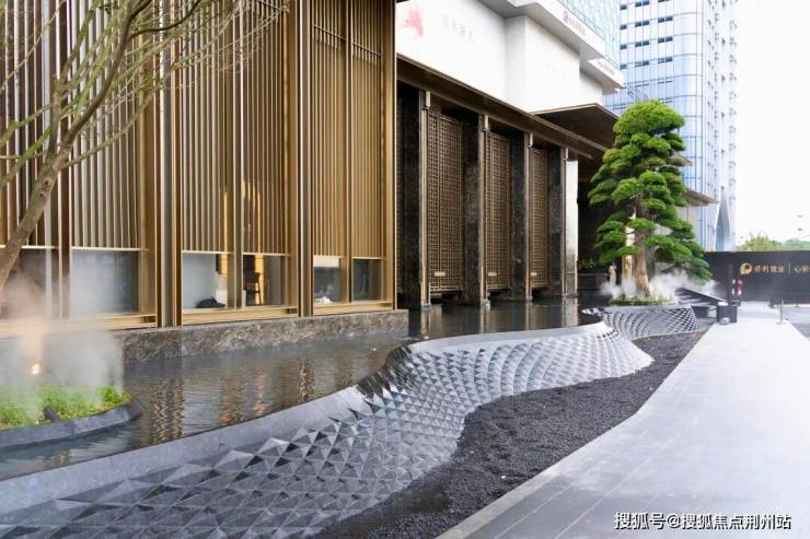 罗汉松、天然奢石、水景的搭配恰到好处,既保留了开车归家、步行入户的仪式感,又不会刻意到让人尴尬。