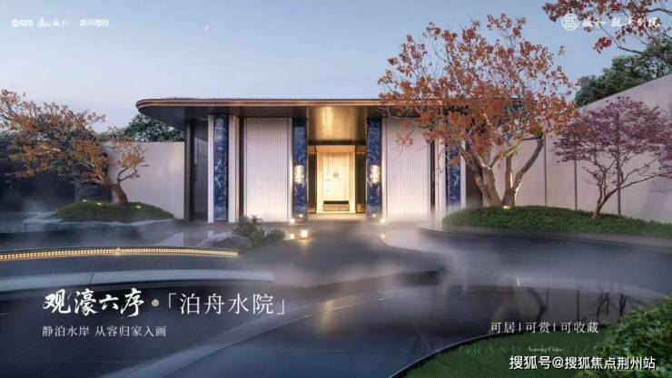 观濠别院的归家,从一道名为【环川门】的奢阔门庭展开。它从容地嵌入城市界面,让人自然完成从公共到私域的情绪转换。