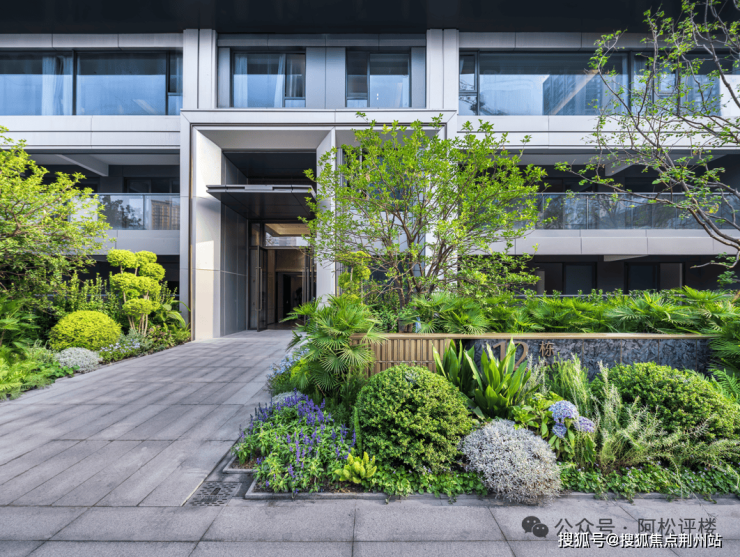 光幕外立面:铝板线条+大面积玻璃为主的组合,颜值出挑,配合楼间的环抱花园式单元入户,美感十足。