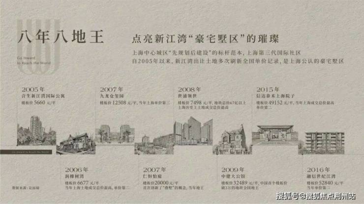 自2005年以来,新江湾城出让的土地多次刷新全国单价纪录,像项目旁边的中建大公馆的2009年的拿地价为32,484元/平方米,作为首个地价突破3万的项目,创下当时全国土地单价纪录。