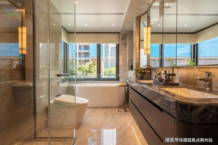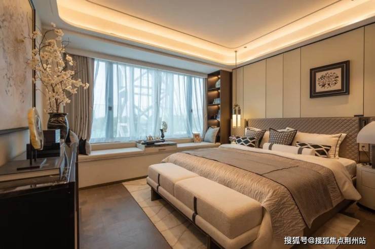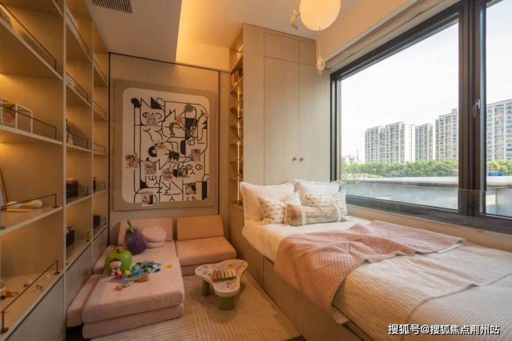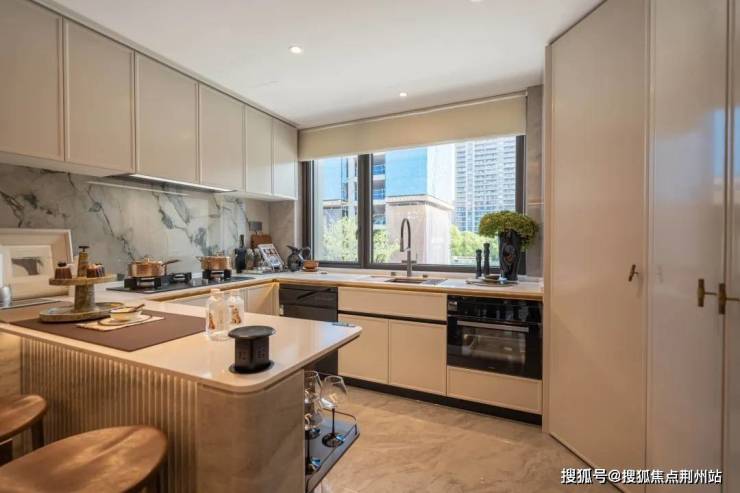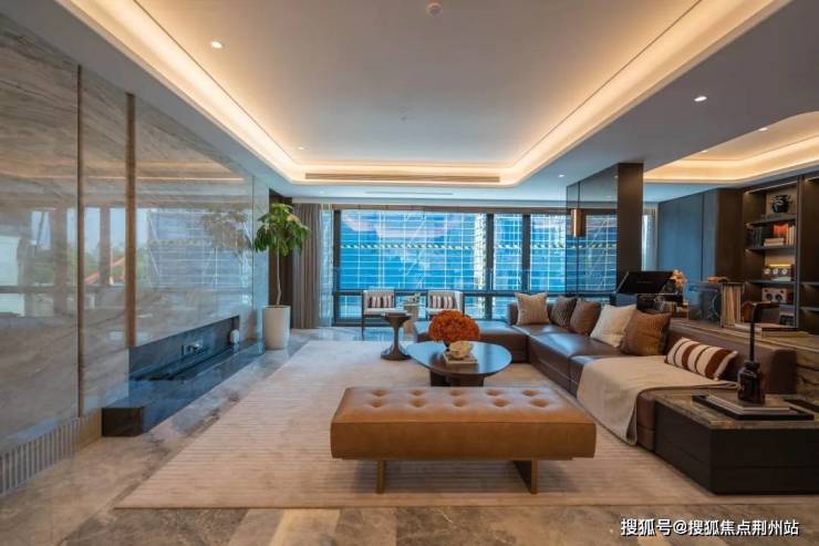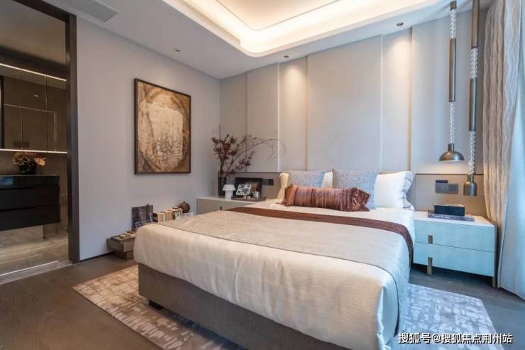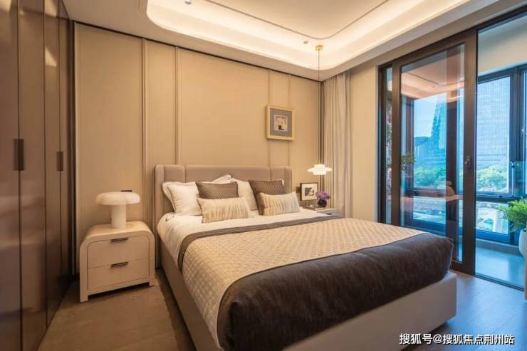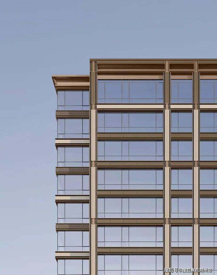 绿城·湖映金沙具备高辨识度,基础底色是大面积玻璃+四面铝板,这在下沙也是独一份。高层公建化立面勾勒极简美学,大面积开窗纳湖光入室,层叠线条随光影起伏,似湖波律动,如油画框般定格风景,点缀金镶玉嵌的美感,镌刻出海派风尚的大湖流金之美。