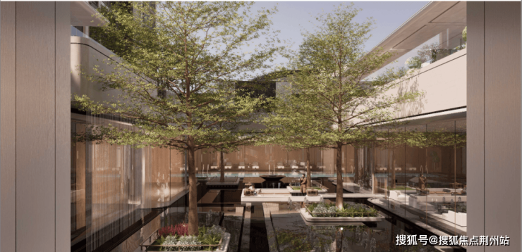 打造约230米东西向风景中轴,打造"南北双园、中轴花园"立体格局,风雨连廊串联其间,形成移步异景的空间韵律,营造开合皆湖境的诗意栖居。