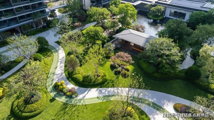 湖映里以当代设计语法解构传统园林精神,在极简主义框架内构建丰富的体验层次。植物搭配紧扣“四季有景+多元主题”,师法自然,通过微地形塑造与植物群落有机组合,春天有落樱点翠,夏日享绿荫如盖,秋时观霜叶流金,冬季品苍松傲雪,构建会呼吸的生态绿洲。