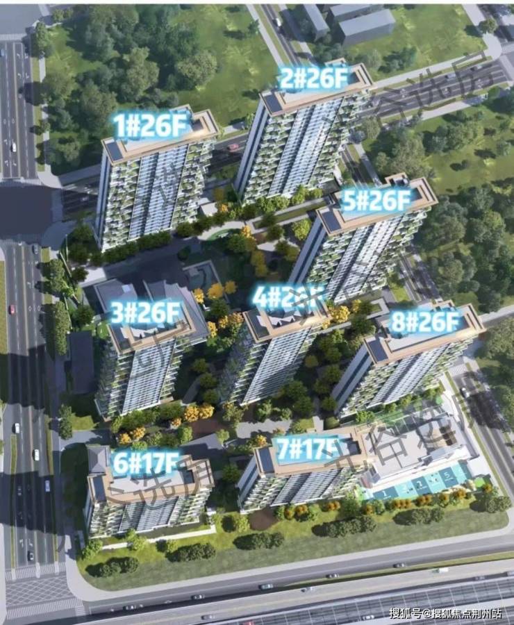 项目没有“高低配”,都是17-26层左右的高层产品。一期整体的楼栋都是正南北朝向的,除了6/7两栋临高速的楼栋是17层的,其他六栋都是26层的产品(楼栋号均为示意,并非真实楼栋)。