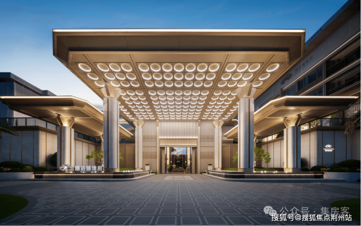 以“金镶玉”的温润和“天圆地方”的形制,塑造板块首个约9米高、30米超宽幅奢尺门庭,古意今形,入微至臻,彰显江南望族的尊贵礼序,绎当代建筑美学盛宴。