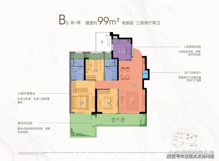 建面约99㎡奇数层,是全南京都很少见的小户型露台产品,且做到了三房两卫!南侧阳台+露台,整个南向空间全部拉满!光看户型就知道阳台有多震撼!