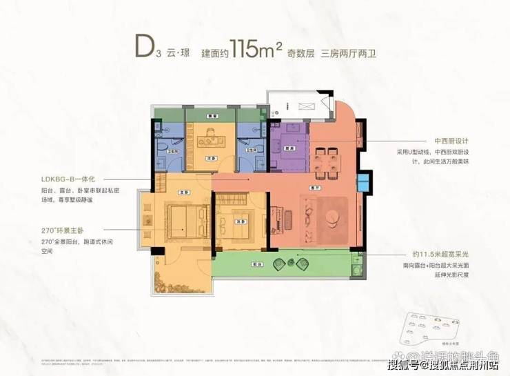 建面约115㎡奇数层,我超爱!简直梦中主卧,270°超级露台、观景飘窗、独立卫生间,约115㎡户型有这样的主卧简直奢侈!同时还有超5米的横厅,很少见到这么优越的115㎡户型布局↓