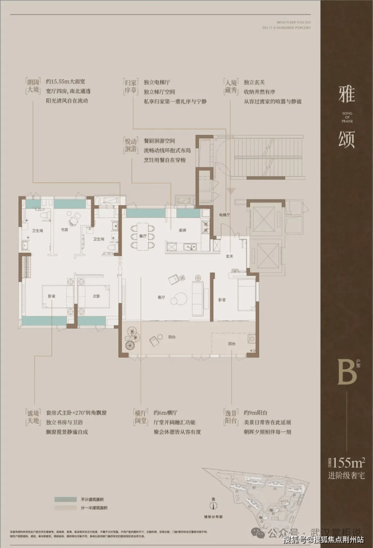 从规划来看,项目不计容部分中的阳台建筑面积约15421.52㎡,户均赠送约19㎡,算下来相当于可做到0公摊。