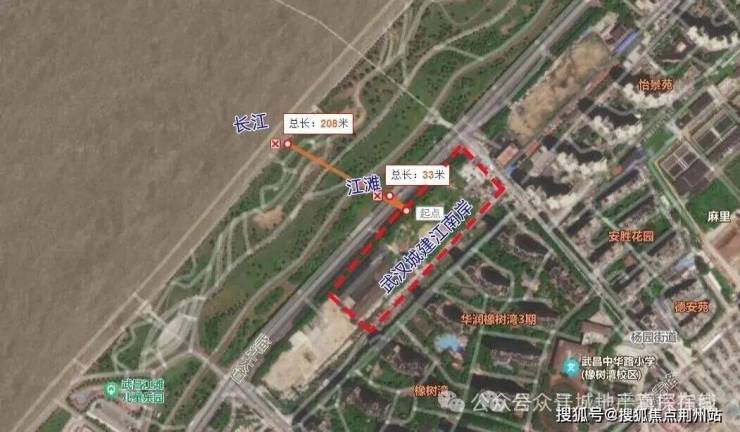 武汉江景房中,一线滨江更珍贵,其中距江越近,价值更甚。武汉城建江南岸一路之隔就是江滩,江滩之外就是壮阔的江面。地图测距显示,项目与长江直线距离仅约200米,与江滩直线距离仅约30米。