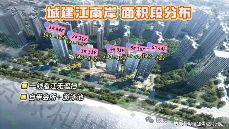 城建江南岸共规划了4栋30-31层的高层住宅、2栋44层的超高层住宅和部分社区底商,目前所有楼栋已经推出,预计2027年底交房。