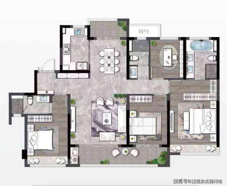 建面约139㎡光幕四房,以四开间朝南+两梯两户+餐客一体,尽显从容。