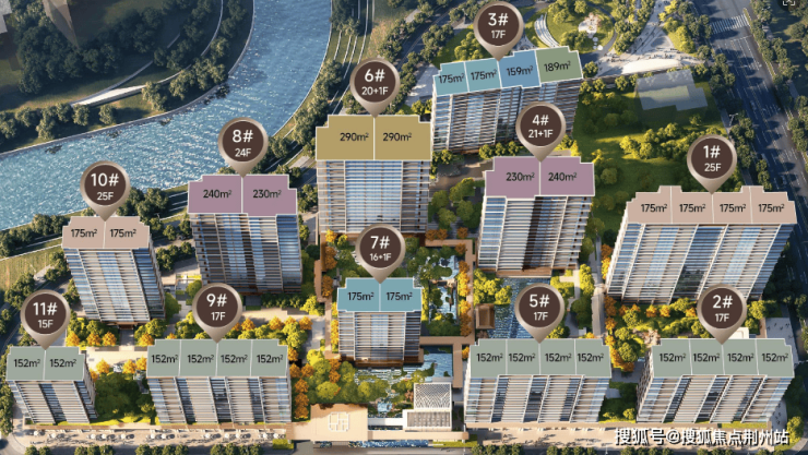 项目规划11栋住宅,其中5栋21-25F高层,6栋15-17F小高层,共614套,户均面积173㎡,绿建奖励+阳台+设备平台+架空层等地上不计容面积9602㎡,相当于每户增加15.6㎡的面积,每户平均得房率提升约9% ,中间核心的位置4#、6#、8号规划四代宅(粗略统计,请以售楼处为准)。