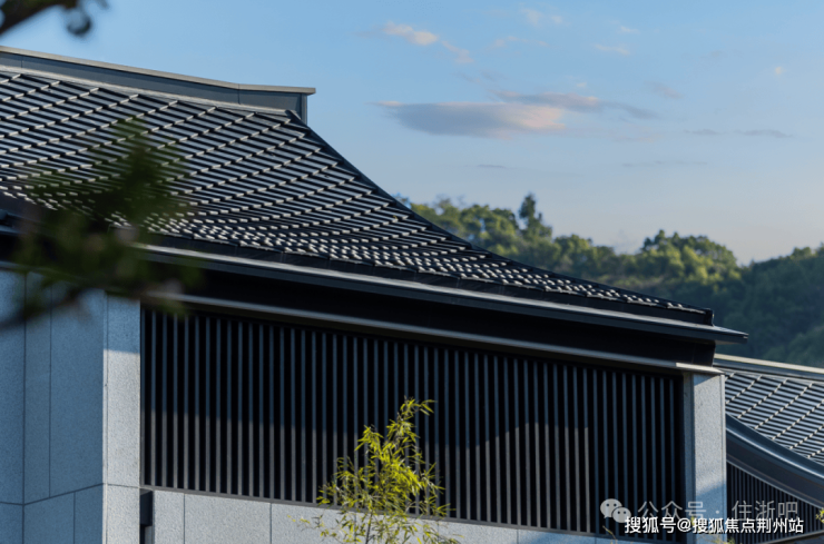 在建筑营造上,由gad张微老师执笔,延续和家园“章法天成,自然而然”理念,玺园·山前取法宋代郭熙的“三远论”,运用石材、玻璃、铝板等材质的巧妙搭配,结合正脊、戗脊、博风板、悬鱼、鱼鳞瓦等经典元素,呈现虚实相生、平远雅致的经典立面。