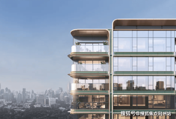 标志性的曲面屏设计通过取消转角结构柱,实现270°观景视野,达成视觉的无界延伸。大面积陶板材质的运用,以其比铝板更丰富的光影、比石材更灵动的质感,与香槟金线条共构出立面的温度与深度。