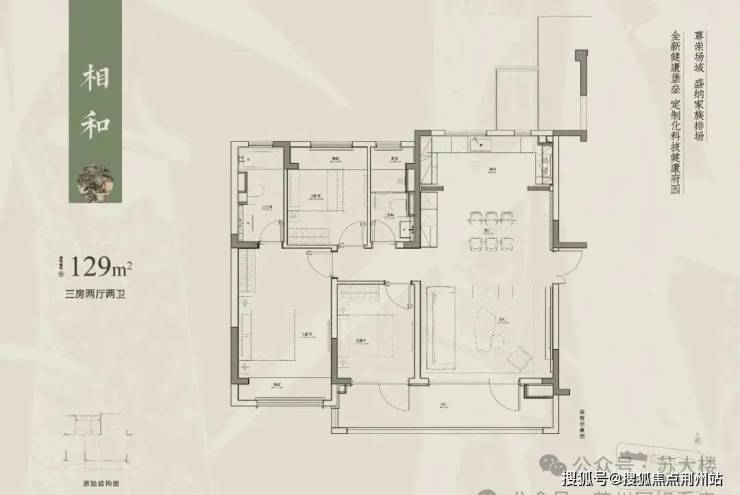 首层:建面约129㎡三房两卫,稀缺底复产品,最大的亮点就是带私家庭院。