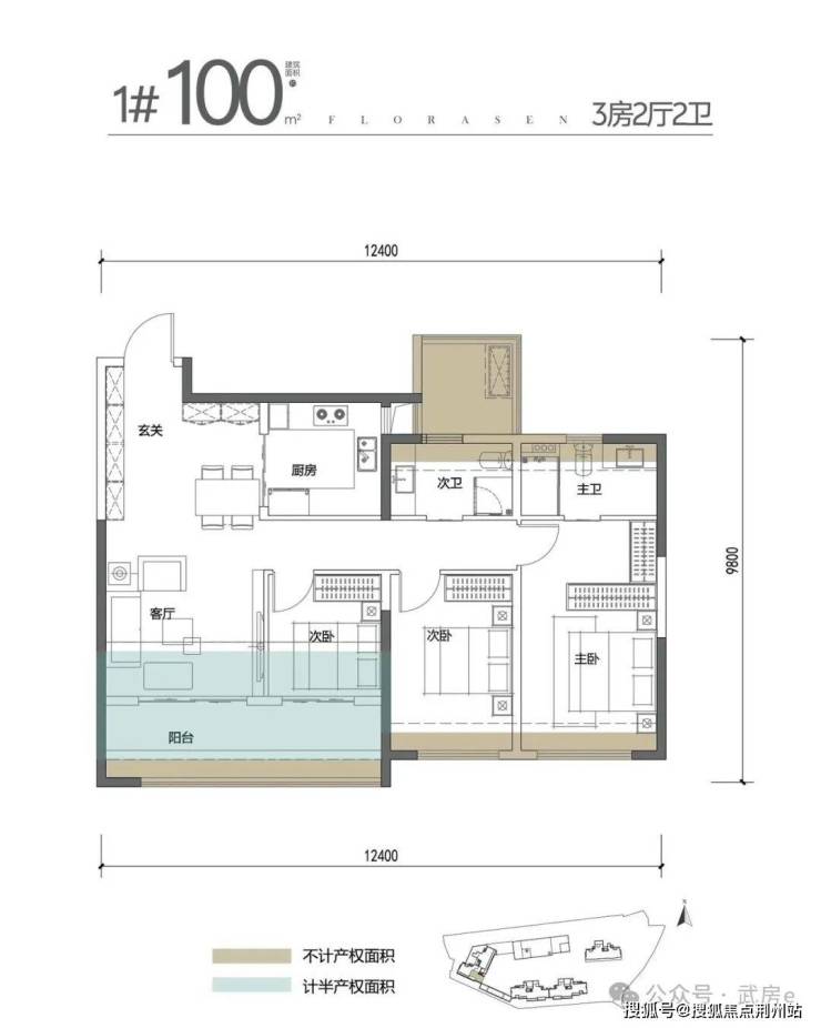约100平三房两卫,均价12500,少量低高楼层113万起