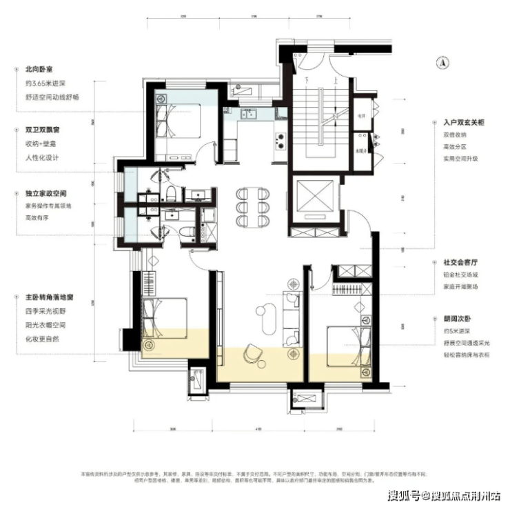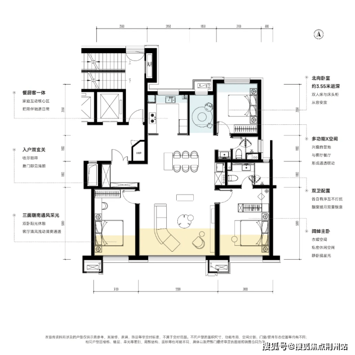 项目开盘的三种户型,120㎡/129㎡(得房率90%左右)、143㎡(得房率88%左右)。