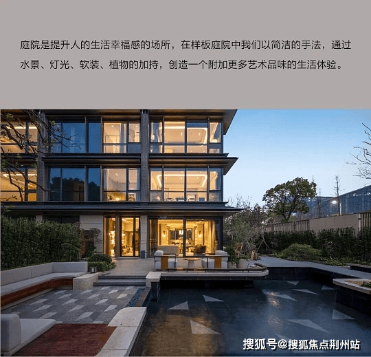 景观设计:公建化立面,四面铝板+超大窗墙比,园林引入白马湖风光,下沉式庭院、溪林烟树等景观打造江南水墨意境。