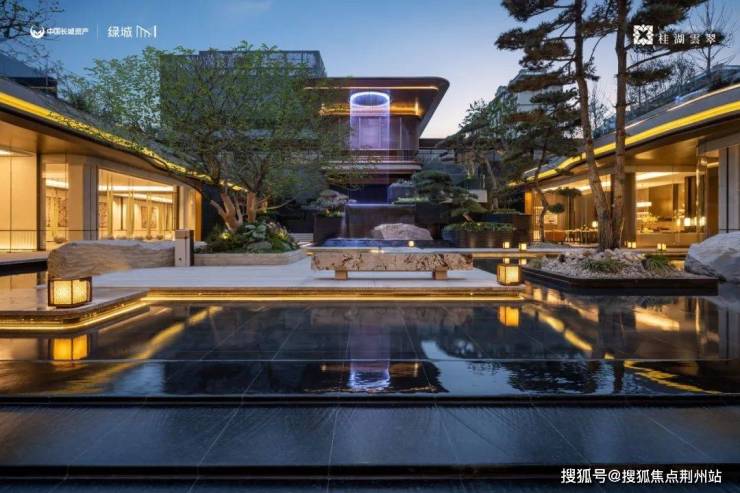 礼序层层渐进,穿过显赫门庭,迎来园林的艺术风景。桂湖雲翠以引水入园的方式,用心营造内外双园,将外部湖景和园区中心庭院联结,勾勒“流水闻樱”、“倚石听瀑”、“雲翠草坪”等桂湖十景,并植入樱花、绣球、红枫、红梅等二十四节气植物,随时开启度假的自然臻享。