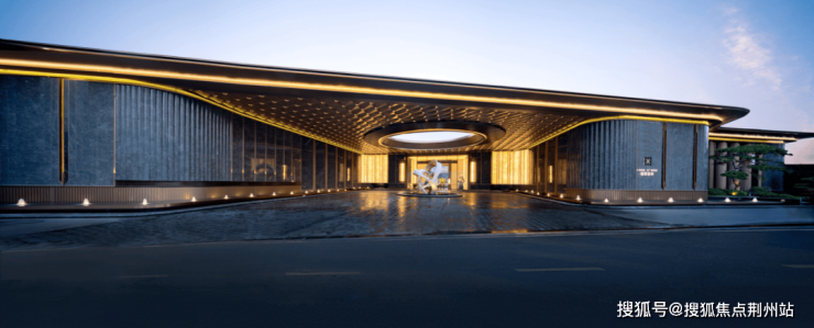 东入口以120米山水长卷展开叙事,盘龙朴树与苍劲油松掩映下,万字曲水纹金属吊顶如粼粼波光流转,与南湖遥相辉映。穿行于光影水韵之间,动人的景致重重交叠,让归来的心境,沉浸在尊贵的仪式感里。