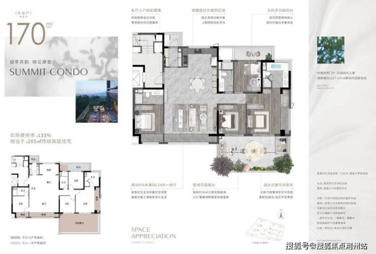 实际使用面积相当于传统住宅205㎡传统高层住宅