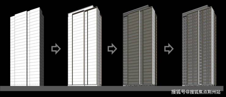 设计强调公建化建筑立面设计,通过顶部退台的处理,形成高低错落的滨江地标建筑形象。
