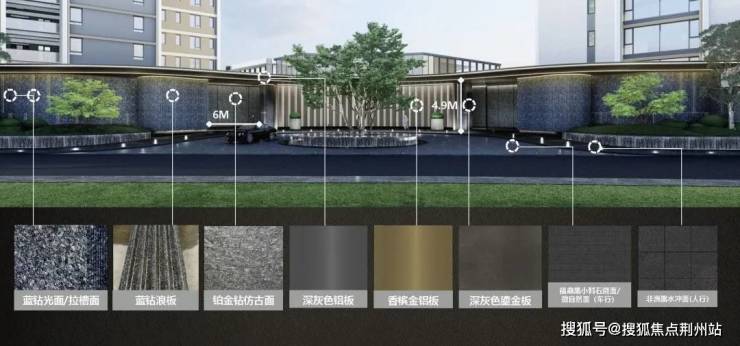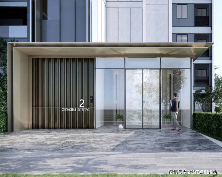 单元门头设计尺度亲切,以竖线条与切面铝型材的对比,实现精致奢华的入户体验。