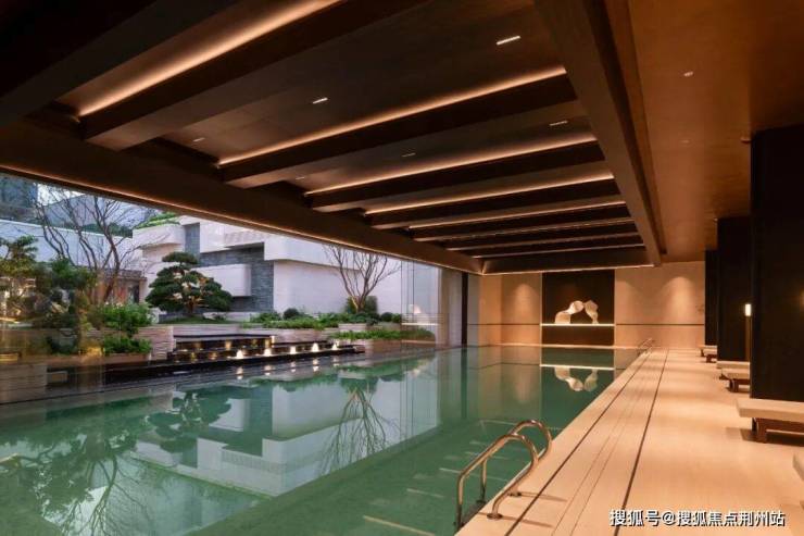 三进“枕流邀月”的下沉会所才是大招。恒温泳池旁边的玻璃能全部打开,直接通向下沉庭院。这就不是个单纯的健身房游泳池了,更像一个高级度假酒店的露天bar,模糊了室内外的界线,氛围感拉满。