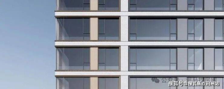 ②比肩一线城市豪宅的公建化立面形象:类公建现代都市颜大面积玻璃幕,搭配金属铝板和真石漆涂料,使得整体建筑大气简洁与线条流畅,建筑现代都市感气息浓郁。