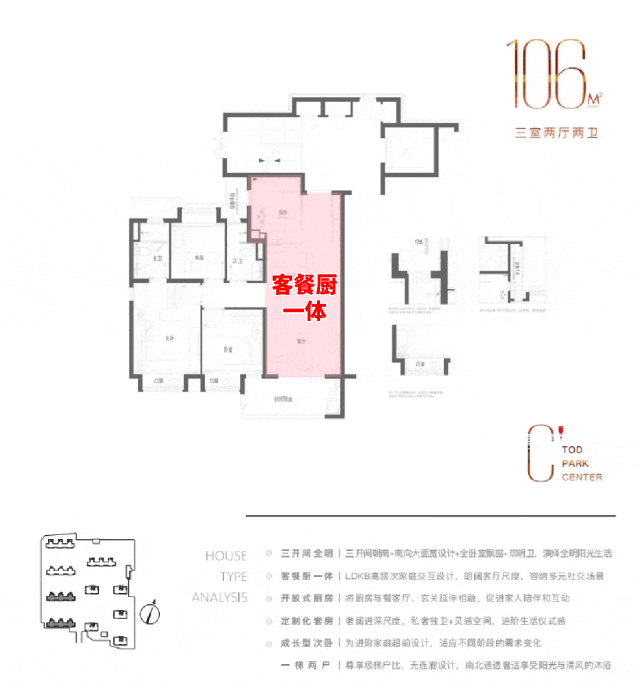 其次客餐厨一体化设计,整个公区几乎没有面积浪费,营造的空间感和尺度感远超同价位其他竞品!