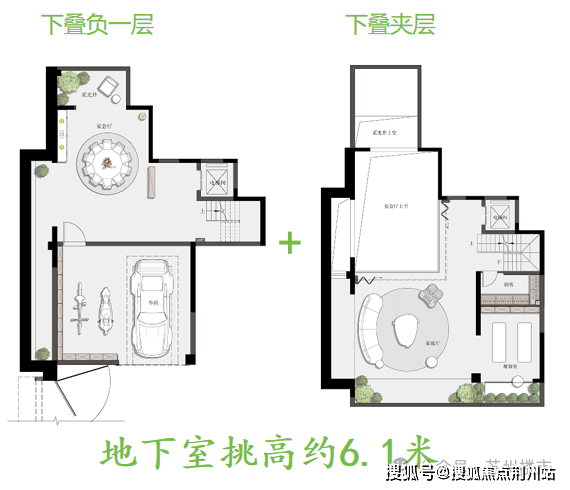 约6.1米挑高地下室可隔两层,叠加地下室、客厅挑空、庭院近300㎡高赠面积,堪称“极致附加值”。