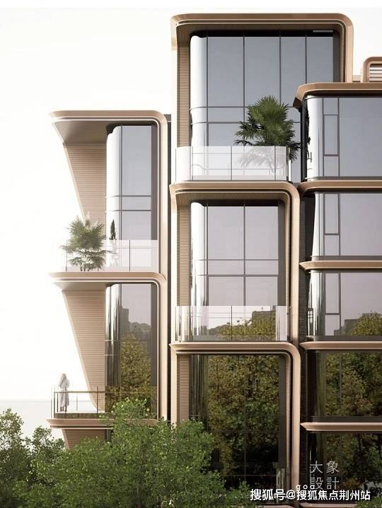 造型设计:以“绽放”为造型母题,采用铝板+玻璃幕墙组合的外立面,突破传统居住建筑规整的立面框架,通过花瓣绽放的生长意向整合水平露台与竖向视线管理构件,构建独特的视觉辨识力。