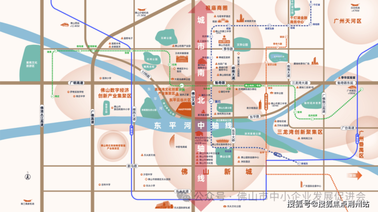 整体规划体系以“三轴、一心、 一带、多组团”为结构,打造公园式总部办公园区,每个组团绿化面 积约 800 ㎡,营造“园中园”式的人性化环境。,打造“未来山水”沿江形象,加之区域内的天然景观资源(佛山青年公园、东平河等),让企业在天地与自然的和谐中,走向辉煌。
