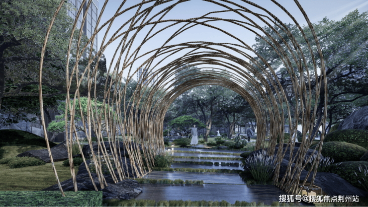 In order to replicate the aesthetics of walking, seeking seclusion, and realizing the spirit of Anman, the leisure garden in the project's residential green space often uses sculptures, stone placement, scenic walls, and wooden platforms to create a peaceful and peaceful resting space. Abstract sculptures or contemplations, scattered mountains and stones are a natural backdrop, and warm colored lights flicker on the walls, creating a painting; Gathering the message of the clear moon and breeze, and embracing the ode of the rising sun and evening mist, the rhythm extends the pursuit and longing for freedom of life; The wind rustled the trees, pacing here, the natural tremor of the body odor, and the temperature of the vegetation. Or sit still and listen, or wander and shuttle, just temporarily let the hustle and bustle of poetry soothe one's heart, discover, touch, explore, and feel, freely release emotions in the scattered blocks of space, and then re interpret and construct with the scenery and environment around them, until new pleasures and insights are formed, creating a peaceful place belonging to one's own heart.
