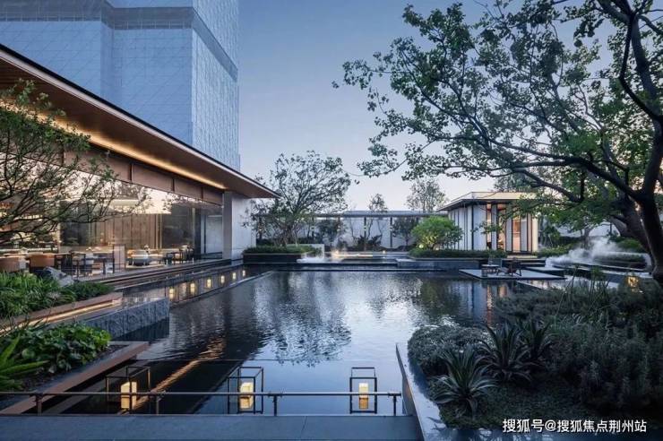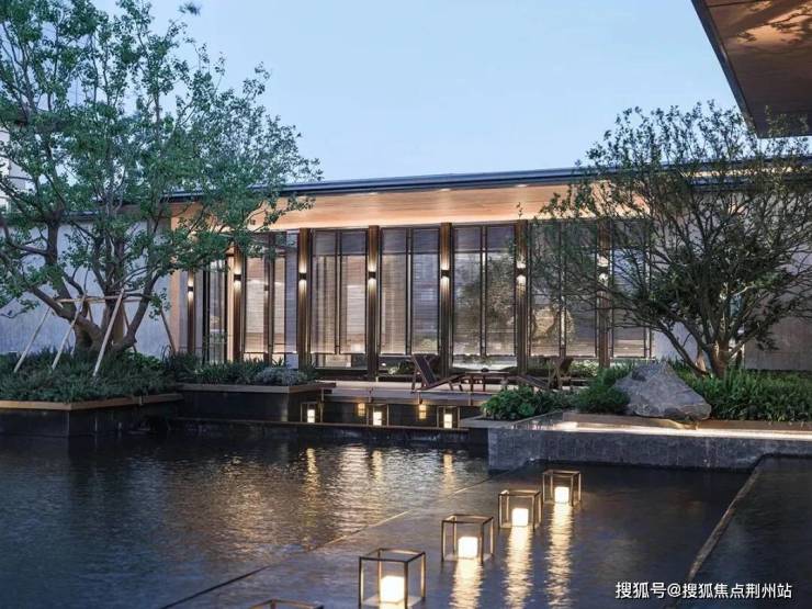 穿过门堂,便是宽阔的琉璃光院。长20米,宽6米,以琉璃为设计灵感,运用光线、镜面水、简约植物池和跌水等元素,绘制出一幅绝美画卷。琉璃与水相互辉映,宛如时空之门,每一处空间都实用且美观。