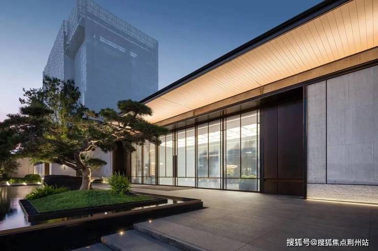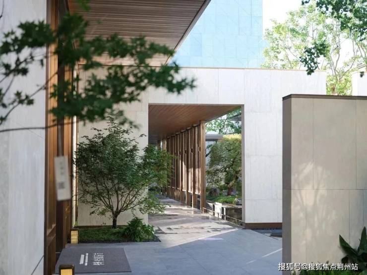 建筑门堂的比例恰到好处,呈现出诗意画境。1:5至1:6的高宽比,使建筑既稳重又灵动。入口两侧的景墙与水景相映成趣,勾勒出一条充满诗意的归家之路,体现了江南昆山的东方韵味。