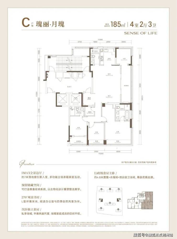 建面约170方户型实现“主卧小家化”,奢华套房式主卧,奢配衣帽间+双台盆卫浴+浴缸,同时配有大飘窗,采光和景观面不输大客厅。它还做到了厨房、餐客厅、封闭式阳台一体化,LDKB家庭式剧场,让每位家人享受舒适的休憩时光。