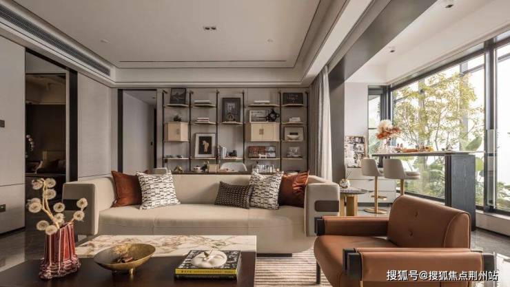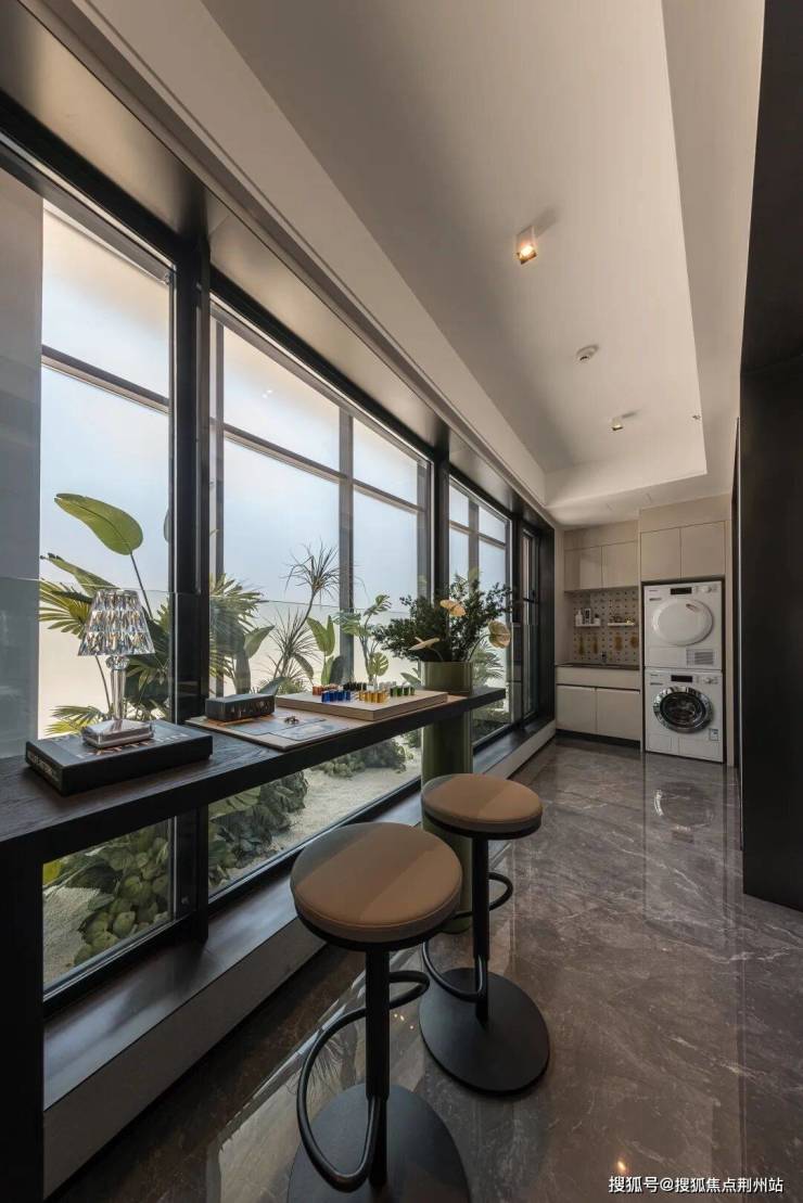 双开间封闭阳台:双面宽大面积的落地玻璃窗让室内空间可以拥有最大化景观面与采光面。同时阳台封闭,也为客厅空间与使用功能的进一步拓展提供了更多的可能性。