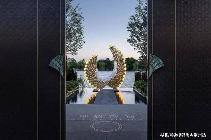 约85米的东方屋檐归家社区大门,整个门头以古代帝王冠冕为设计概念,大门中间以高约6.1米宽约6.5米的定制凤起“冕旒”,整个冕旒约6045片景泰蓝纯手工完成,全苏州独一无二。