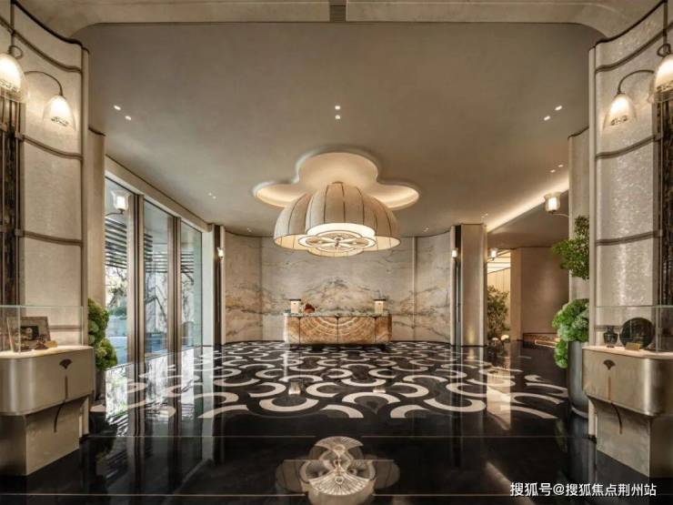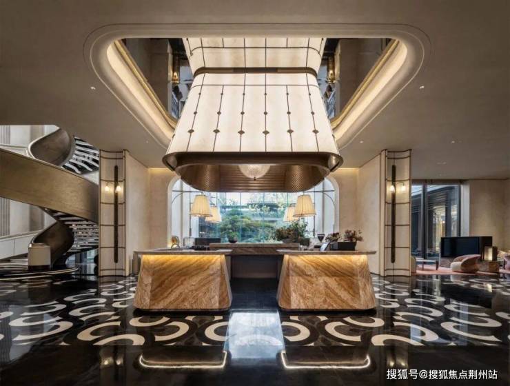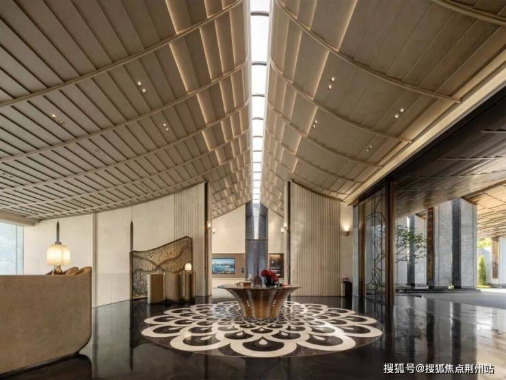 进入售楼处大门的一刹那,超大面积的金属,奢石,岩板,白玉,景泰蓝等等映入眼帘。